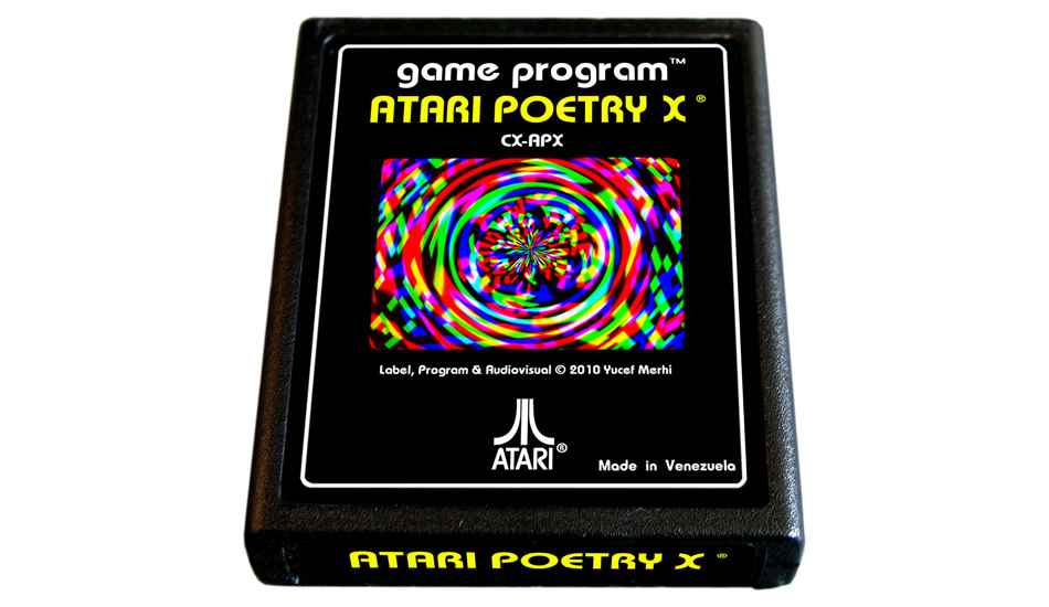 Atari Poetry X extends the exploration on video games started by the artist in 1985. The game console is employed to show a very peculiar way to write/program and display poetry. Due to the important role of Atari on the advance of many technological concepts and devices, the use of this machine transcends the sense of nostalgia, coming into view as a powerful and meaningful icon of an everlasting era.