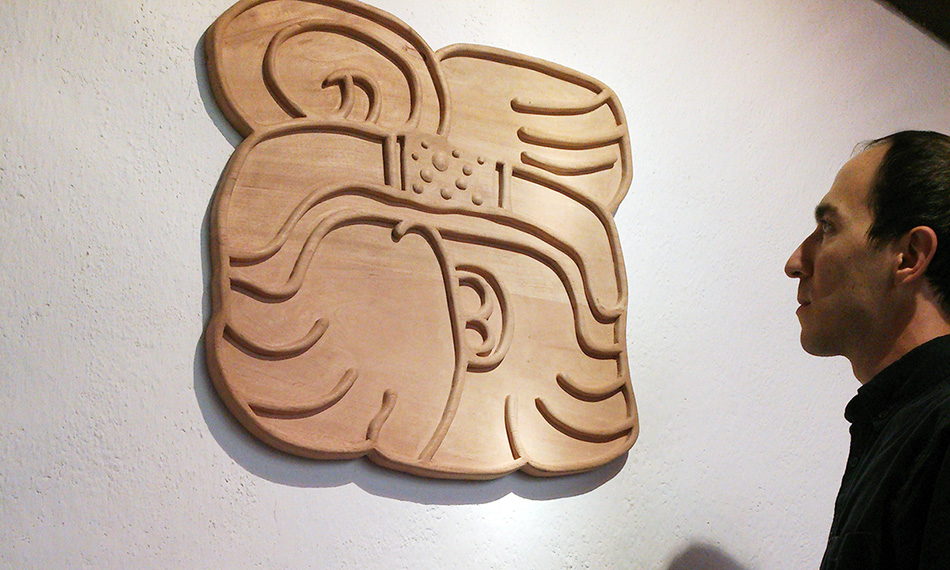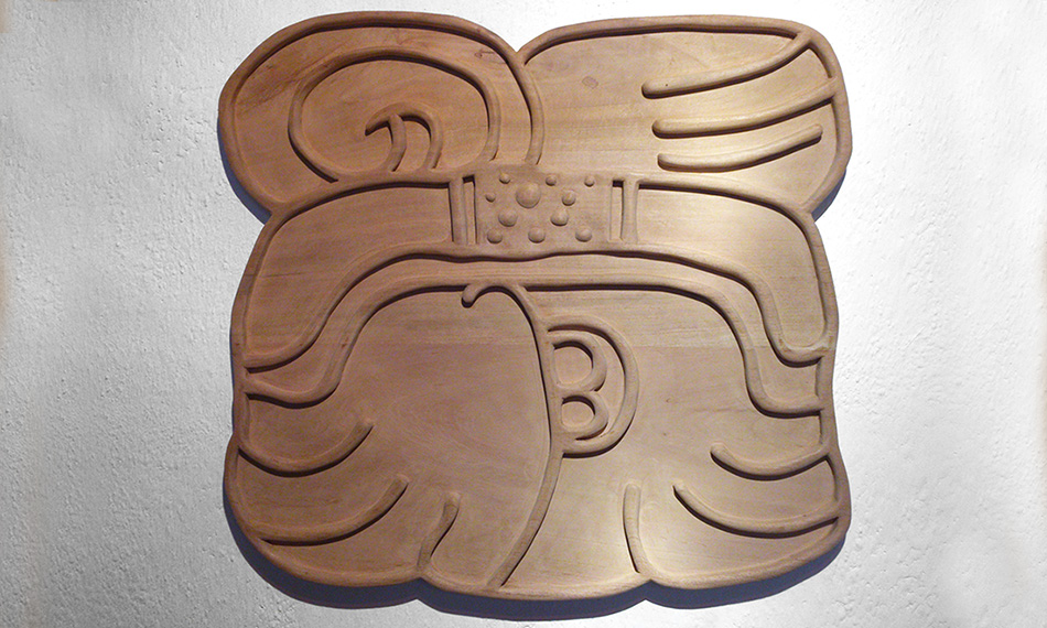 For Perfect Language: Maya, the artist researched and reproduced a set of logograms (Maya glyphs) employing a wide range of materials. He selected elements that for centuries have been part of the Maya culture: earth, cocoa, wood, jade, dyes, beads, etc. Then, he investigated which were the Maya symbols that designate each element; making sculptures and installations that range from 11 inches to 50 foot. To decipher the glyphs represented by Merhi, one must only know that "what you see is what it says".