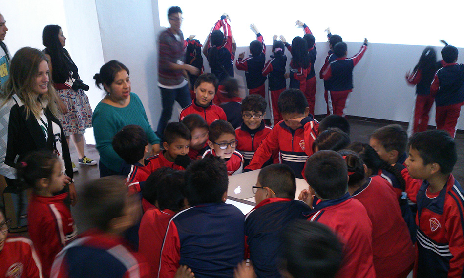 Only when the computers sense bodily signals a poem is revealed and a melody is triggered, making viewers/participants an integral part of this work. People of all ages are invited to perform and explore their own facial gestures. The resulting text is projected on the walls, enabling other viewers to read the ever-changing poems, while listening to the endless eletronic tunes.