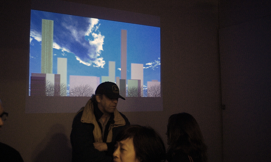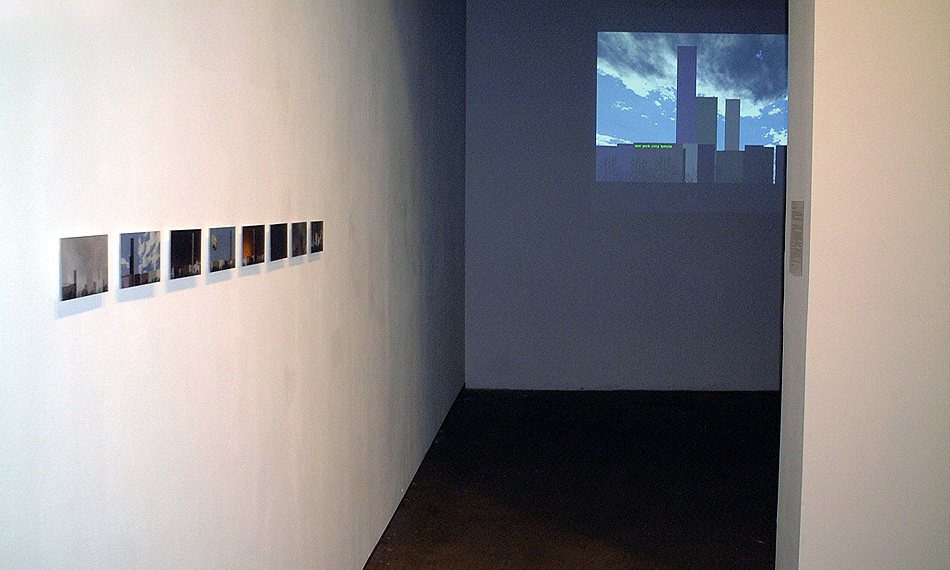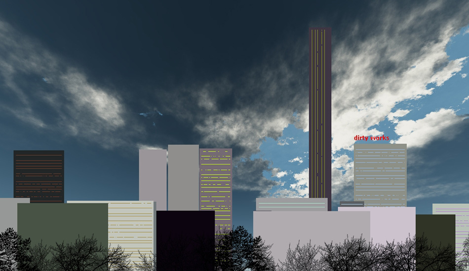 Time in is is a data visualization system that shows the online queries of Time Out New York Magazine. The database stores all the queries entered by the website visitors. This is the first collaboration between artists Yucef Merhi and Carlo Zanni. Merhi and Zanni hacked into the website and created a dynamic city that visualizes information in constant flux. Live queries shift the scale of skyscrapers every minute while CNN news cover images take the form of choppers and zeppelins. Realistic skies are rendered from realtime data obtained from La Guardia Airport's website.